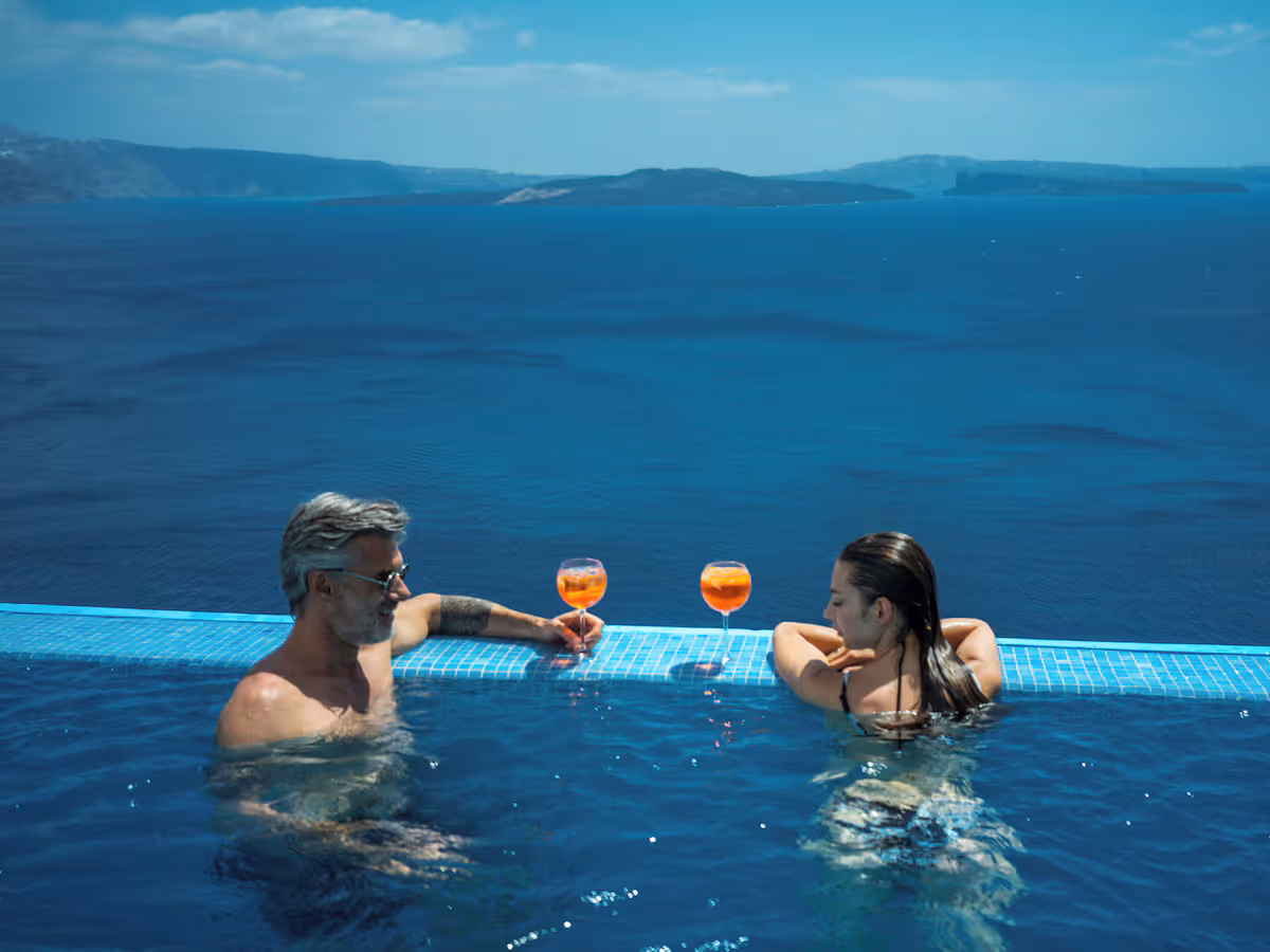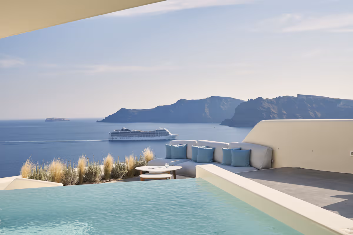 Many of the best private pool suites are caldera-facing, but not all private pools include the iconic cliffside view. Always confirm the suite category includes a caldera view, not just a pool feature.